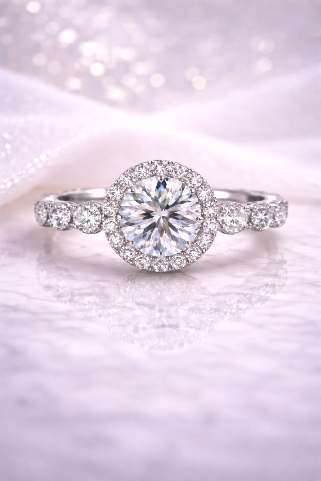A true signature of elegance and brilliance, the BlushCarat Special Diamond Ring is crafted to make every moment unforgettable. Featuring a stunning round brilliant-cut diamond at its center, gracefully surrounded by a shimmering halo of finely set diamonds, this ring radiates exceptional sparkle from every angle. The delicately detailed band, adorned with accent diamonds, adds depth and refined charm to the design. Expertly crafted with premium materials and flawless craftsmanship, this ring is perfect for celebrating love, milestones, or life’s most precious occasions. A timeless treasure designed to shine forever.