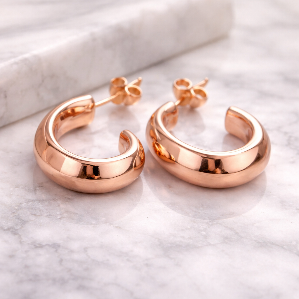 Sleek, modern, and effortlessly elegant, the Sone Rose Golden Earrings 14K are crafted to add a warm glow to every look. Designed in radiant rose gold with a smooth, polished finish, these earrings feature a refined silhouette that blends contemporary style with timeless charm. Lightweight and comfortable for all-day wear, they are perfect for both everyday elegance and special occasions. A versatile piece that complements every outfit with subtle luxury.